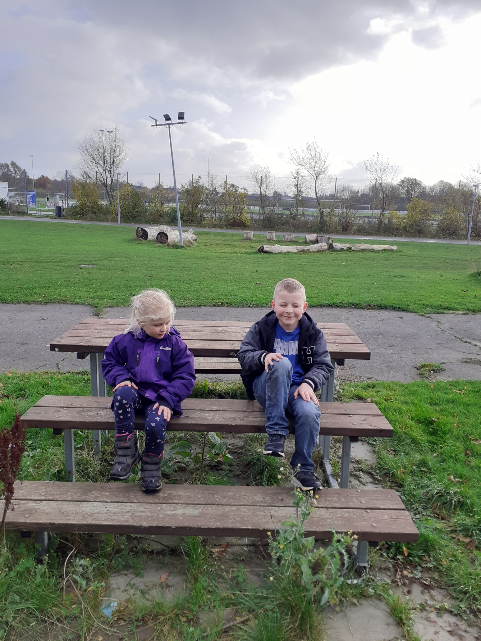 Sæt Jer på den højeste bænk og læn jer lidt tilbage, tramp i den nederste bænk.